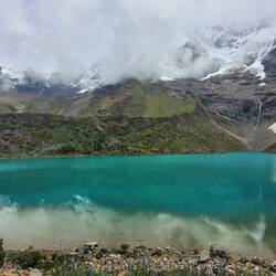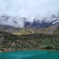 Am Morgen nach dem Palccoyo ging es für uns schon zum nächsten Tagesausflug. Wegen einer Straßensperrung fuhren wir schon morgens um 5 mit einem Kleinbus los. Nach 3 Stunden Fahrt und einer Frühstückspause sind wir dann am Fuß des Berges, auf dem die Lagune liegt, angekommen. Jetzt hieß es wandern. Die erste halbe Stunde war noch flach am Berg entlang. Anschließend ging es dann für ca. eine Stunde ziemlich steil 400 Höhenmeter bergauf. Das war eine ganz schöne Herausforderung. Oben auf 4200 Metern angekommen entschädigte diese wunderschöne Lagune aber für alle Anstrengung. Die Farbe des Wassers und die schneebedeckten Berge im Hintergrund waren beeindruckend. Leider war es weiter oben ziemlich bewölkt, sodass wir die Berge oberhalb der Lagune oft nicht komplett sehen konnten. Alleine waren wir natürlich auch nicht an der Lagune. Es waren einige Touristen mit uns dort. Das hat uns aber beides gar nicht so gestört.