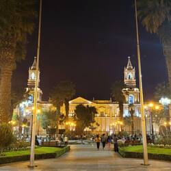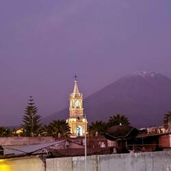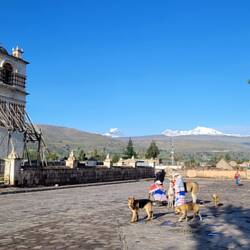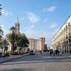 Von Cusco aus ging es weiter in die zweitgrößte Stadt Perus, Arequipa. Die Stadt liegt auf 2330 Metern zwischen mehreren Vulkanen. Bei gutem Wetter kann man von überall in der Stadt die weißen Spitzen der Vulkane sehen. Arequipa wird auch als weiße Stadt Perus bezeichnet, weil viele Gebäude aus weißem Vulkangestein gebaut wurden.