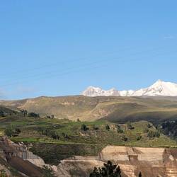 Am nächsten Morgen fuhren wir früh weiter Richtung Canyon. Zuerst ging es aber in ein kleines Dorf in dem die Kinder jeden Morgen vor der Schule traditionelle Tänze aufführen. Auf der Weiterfahrt zum Canyon hielten wir dann immer wieder bei Aussichtspunkten an und sahen uns die wunderschöne Landschaft an. Überall konnte man alte Terrassen sehen. Einige davon stammen sogar noch von Zeiten vor den Inka. Außerdem konnten wir immer wieder die weißen Vulkane in der Ferne sehen, einer davon ist auch gerade aktiv.
