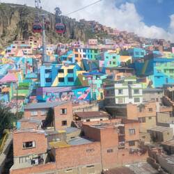Die nächsten Tage haben wir die Stadt dann noch weiter auf eigene Faust erkundet. Wir sind viel umherspaziert und eine große Runde mit der Seilbahn, um die ganze Stadt gefahren. La Paz ist nämlich die Stadt mit dem längsten Seilbahnnetz der Welt. Ähnlich wie in Medellin werden so die Randbezirke auf den Bergen mit der Innenstadt verbunden. Der Blick von der Gondel auf die Stadt war sehr schön.