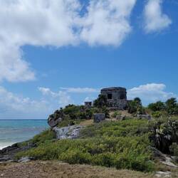 Am nächsten Morgen radelten wir dann zu den Mayastätten. Die sind die einzigen, die direkt an der Küste liegen. Es war ganz schön mal eine Mayastätte direkt am Meer zu besuchen. Es war an dem Vormittag aber auch ganz schön voll und wir haben schon beeindruckendere Mayastätten in Mexiko besucht. Anschließend fuhren wir noch etwas an der Küste entlang und tranken noch eine frische Kokosnuss am Strand 🥥🌴