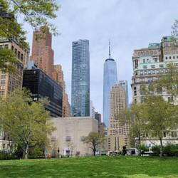 Als wäre es noch April war am nächsten Tag das Wetter wieder super. Also hieß es morgens ab in die Metro und rüber nach Manhatten. Auf dem Plan für den Tag stand der südliche Teil Manhattens. Zu erst besuchten wir das World Trade Center Memorial. Ein ziemlich bedrückender Ort, der in Erinnerung an den Anschlag vom 11. September 2001 an der Stelle errichtet wurde, wo einst die beiden Türme standen. Anschließend ging es hinauf auf das höchste Gebäude der USA, das One World Trade Center. Von dort oben konnten wir fast über ganz Manhatten und auf der anderen Seite über das Wasser schauen.