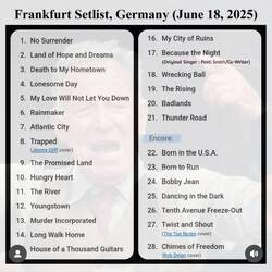 Nach 33 Jahren fast auf den Tag genau wieder ein (das letzte?) Konzert in Frankfurt. Mega Platz direkt am Zaun. Stadion auf den Tag 100 Jahre alt, erste Bruce-Show vor ebenfalls fast genau 40 JahrenMeer informatie