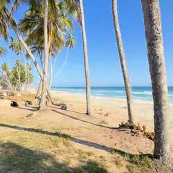 Ich halte kurz an und gehe ein paar Schritte ans Wasser. Der Strand: riesig, fast endlos – vier Kilometer feiner Sand, begleitet von einer parallel verlaufenden Promenade, die sich mittlerweile richtig gemacht hat. Viel hat sich verändert, seit ich das letzte Mal hier war – wobei ich mit „viel“ nicht nur die neue Tourist Information am Anfang des Boulevards meine. Alles wirkt aufgeräumter, sauberer, vorzeigbarer. Und dazu, wie bisher: offene Horizonte, Palmen, die sich im Wind wiegen und ein Meer, das klingt, als hätte es Zeit. Ich mache ein kurzes Video – der Blick schweift, der Moment bleibt.