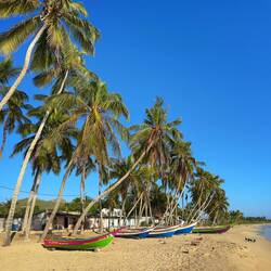 Der Strand liegt noch still, aber die Boote sind wach. In Reih und Glied parken sie am Ufer – rot, blau, gelb, weiß, grün, einige ziemlich verschlissen, andere frisch gestrichen, als wollten sie sich gegenseitig überbieten in maritimer Schönheit. Ein Fischer lacht mir zu – keine Zähne, aber ein Charisma wie Jack Sparrow auf Valium. Die Luft riecht nach Diesel, Salz und dem Fischfang vom Vortag, dessen Reste wohl irgendwo rumgammeln. Ich nehme Platz auf einem Palmenstumpf, schaue den Fischern bei ihrem Tagewerk zu, dem Atlantik beim Blinken. Der Wind trägt Gesprächsfetzen, Möwengeschrei und irgendwo weiter hinten probt ein Hahn seine zweite Karriere als Tenor.