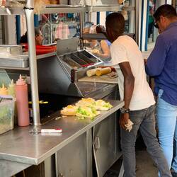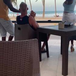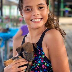 Auf dem Rückweg von Porlamar an de Playa el Agua halten wir nochmal am Playa Parguito zum Essen im Tortuga Verde. Die Hunde-Mamas lieben mich, weil ich die Welpen mit kleinen Happen versorge.