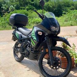 Heute waren wir vormittags im Centro Comercial bei Maria zur Pediküre und Maniküre mit unserem neuen Motorrad, einer Kawasaki KLR650.