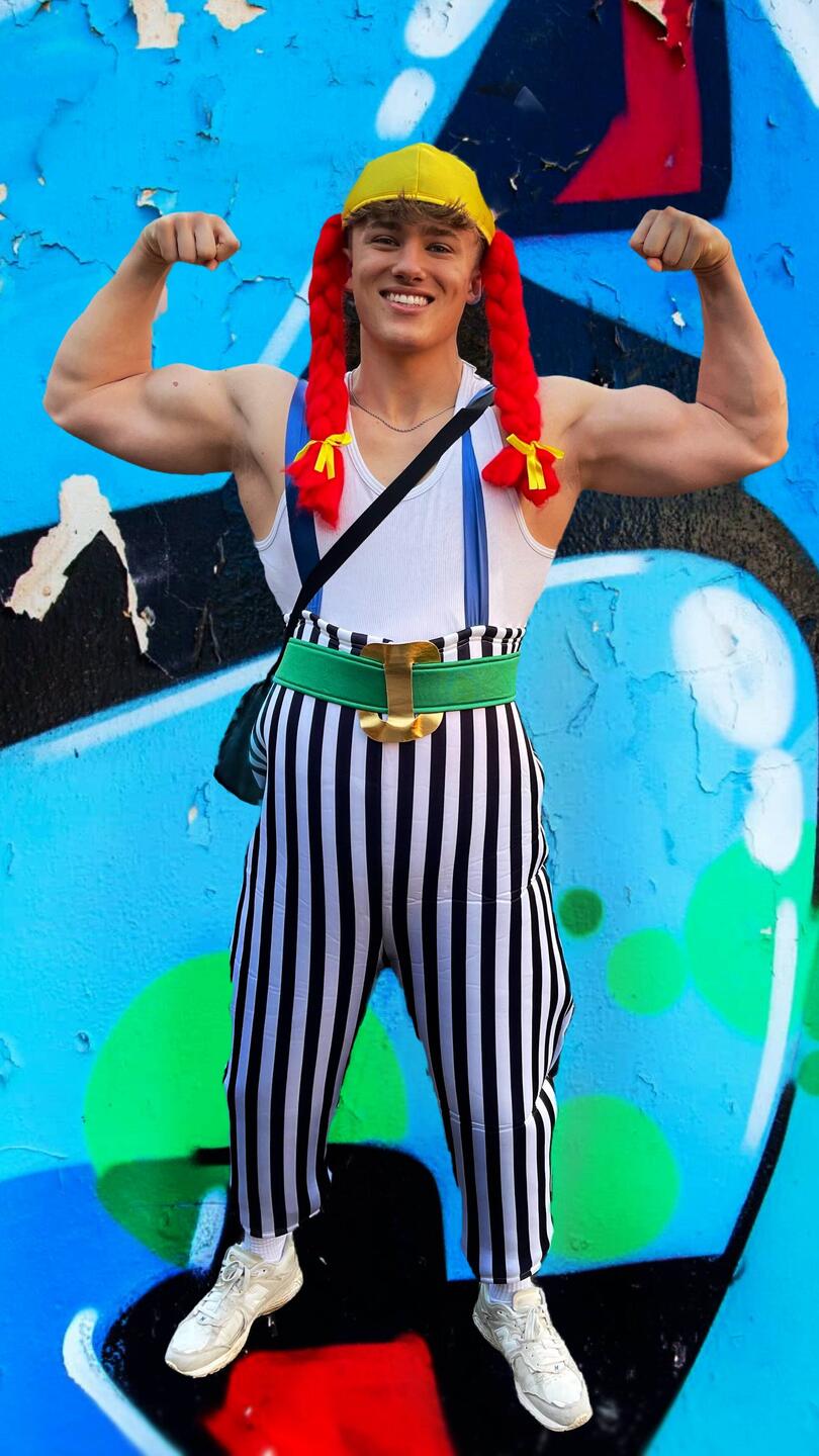 Elias unter den bunten Luftballons, umringt von Freunden,Read more