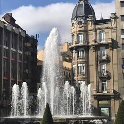 We had a much needed rest day in Leon today, reveling in the luxury of sleeping in until 7 and starting the day at a leisurely pace. The moons aligned this time and it's Saturday, as in market day in Leon. Plaza Major is packed with food stalls and purveyors of all sorts of fruits, vegetables, nuts, olives, flowers and sausages. At the Mercado del Conde Luna, a central covered market, the vendors are mostly meats and seafood. Seafood stalls have fish of all shapes, sizes and colors, plus prawns, crabs, snails, and shellfish. As for the butchers, let's just say no part of the animal is wasted. Ears, snouts, feet, tripe, tongue and brains join hearts, livers, kidneys and who knows what all. Add in the assortment of sausages, whole lamb carcasses, and every cut of meat or poultry you can imagine and then some. Moving right along, the next plaza was the garment district with shirts, pants, socks, undergarments, hats and shoes. Ceramics and art were featured in a few other parks and squares. At one point we heard music and spotted a folk group/band marching with bagpipes. Bagpipes in Spain? The Celts were among the people who came to this area, though not as well known as the Moors. The population of Leon was out in full force, shopping, socializing, and enjoying morning beverages and snacks. We hopped on a cute little city sightseeing train that made its way through town, past all the major sights. It took us out past the Convento de San Marcos, a monastery built by the Knights of Santiago back in the 12th century. Over the years it has served as a hospital for pilgrims, a prison, and now a five star luxury hotel (the posh place featured in The Way with Martin Sheen). It's currently under renovation, so no opportunity to recreate those scenes. We ended up in front of Casa Botines, an incredible trapezoid building created by the famous Spanish architect Gaudi (of Catedral Sagrada Familia in Barcelona) for textile merchants. Combining function with artistry, it has been restored as a museum of art, history of the building, and tribute to the architect. Outside a bronze sculpture of Gaudi sits on a park bench, admiring his creation. We managed to cover a lot of territory on our "rest" day but hope to find dinner before the traditional Spanish seating at 9 pm so we can get to bed early. Tomorrow we are on the Camino again.Read more