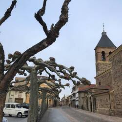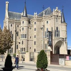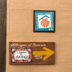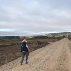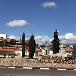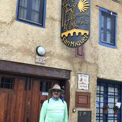 Last night at the albergue pilgrims dinner the subject turned to shoes. As you enter the facility there's a big closet with racks filled with an assortment of footwear. Pilgrims are expected to take off their hiking gear and deposit them on a shelf to avoid tracking dirt all over the place. Dick, from California, was lamenting his shoe experience on the Camino. His favorite hiking boots bit the dust shortly before his departure. He took them in for repair, but they were declared DOA. That put him in the position of embarking on the journey with untested foot companions. He started in new boots which gave him blisters, then switched to trail shoes. His feet were hurting, so plan C was sandals. Hopefully that works as he's running out of options. We are very pleased with our Hoka trail shoes which are serving us well. At this point they are rather dusty and the tread is showing signs of wear (after 350+ miles you would too). We're debating whether we should burn or bronze them when we get home. We started the day in darkness, on a path paralleling the road which meant we were listening to sounds of traffic while sucking in diesel fumes. Now wait, someone said this was supposed to be the prettiest part of the Camino. Scenery picked up as we crossed the Puente del Paso Honoroso, a 19 arch bridge from the 13th century made famous by a knight who had been rejected by the lady who was the object of his affections. He put an iron collar around his neck and conducted a jousting tournament for 2 weeks, taking on all comers. After defeating 300 contestants he removed the collar from his neck, declaring himself to be freed from the bondages of love. Good to know he finally moved on. We passed through Hospital de Orbigo, Villares de Orbigo and Santibanez de Valdeiglesias as the accompanying terrain turned to rolling hills. This is just a little warm up for the mountains looming in the distance. On the way into San Justo de la Vega near the Cross of Santo Toribio we could see Astorga in the distance as our first troubadour/ flamenco guitarist serenaded the pilgrims urging us onward. The music was nice, but the thought of chocolate, one of Astorga's claims to fame, is what kept us going. Just may have to substitute chocolate for arrival beverages.Read more