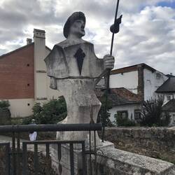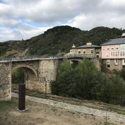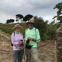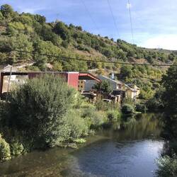 Yesterday was a really low point and I kept wondering what were we doing? Felt as if we'd been sold a bill of goods and the Camino was a ruse foisted onto foreigners to keep small towns in Spain alive. After all, I read that Foncebadon had been an abandoned village inhabited only by wild dogs in the 1990's. Maybe we should be honoring our American heritage by walking the Oregon Trail. A chance happening totally turned my mental state around 180 degrees. When we stopped for arrival beverages in Cacabelos, a very nattily dressed older gentleman approached Mike and asked him if he spoke English. Turns out our new Spanish friend Jaime likes to come down to the café along the Camino for a glass of wine in hopes of practicing his English with pilgrims. He's done the Camino himself and enjoys sharing the camaraderie. When I asked about the beautiful lapel pin on his sports coat, he said he was a retired military man, a former Air Force pilot. He was delighted to learn of our military background as well. We knew we should be heading for lodging, but we lingered over a couple of drinks. When we finally said we had to leave, he said he'd be back that evening. As luck would have it, the only place we found for dinner at a reasonable hour last night was back in the same spot. Jaime returned midway through dinner, so we joined him on the terrace afterwards. He happily answered our questions about life in Spain and the dining habits. Turns out they eat their big meal at a late lunchtime, then finish off the evening with light fare. We'll have to try that when we're done walking the Camino and are hanging out as tourists. Jaime asked how I'd learned Spanish, so I spoke of growing up in Venezuela. Originally from Santiago, he lived in Argentina during his teenage years and retired to Cacabelos. It was amazing how much we had in common, discussing life in general. Hours earlier we met as strangers, we ended the evening as friends. Today's Camino took us over rolling hills through vineyards of the El Bierzo region, some fields of newly planted vines interspersed with older vineyards. Leaving Cacabelos at dawn, once again we were treated to a spectacular sunrise. We are getting hooked on beautiful sunrises, freshly squeezed orange juice, and café con leche. The El Bierzo soil is obviously very fertile. Vegetable gardens and orchards are tucked everywhere. The path was lined with chestnut trees loaded with nuts and fig trees laden with fruits, not to mention all the apple trees. Whereas the meseta was endless fields of grains uninterrupted by borders or variation, between the hills, fields and orchards, the El Bierzo provides a mélange of sights and sounds. We walked along a river most of the day, arriving in Trabadelo, a small lumber town, in time for lunch.Read more