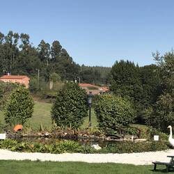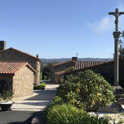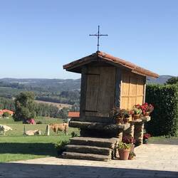 We decided to head straight for the Camino this morning and skip the trek past all the churches in town and up the hill. It only seemed like the thing to do as I'd "been there done that" while exploring town yesterday afternoon. We had a pleasant all downhill jaunt out of town and into the woods by ourselves in the dark. Just as Mike remarked that we had the trail all to ourselves (markers confirmed we were on the right path) we came upon a river and a trio trying to walk across very large, uneven steppingstones. The fellow in front was struggling, and the 2 behind were trying to shine a light to help. The first pilgrim almost made it across before losing his balance and falling off near the end. Turns out he was not with the next 2, and they were a bit abrupt with his lack of adequate lighting and progress. They took off up the hill and we jumped in to see what we could do. The poor fellow was an 81 year old French Canadian man from Quebec who spoke little English or Spanish. We helped him to his feet, got his pack and gear back in order, then took his arm and guided him up the hill. He told us his wife of 35 years had died in April and he had left Canada 5 September to walk the Camino. He was planning on walking all the way to Finisterre, visiting the basilicas along the way. He also hoped to spend time in Madrid and Paris visiting art museums before heading home in November. We walked together until our first coffee stop when he chose to continue after thanking us profusely for our help. Wow, 2 years of high school French really came in handy. We were in desperate need of our first café con leche of the day, plus who could pass by a place named No Camino? Refueled, we hit the trail once more, this time running into Hector and Walesa. We walked together for a while comparing notes. We aren't in a hurry as today is supposed to be a short day, only 14 kilometers, which is like a rest day at this point. We made it to Arzua well before noon and settled in for arrival beverages. When I fired up the phone to locate our lodging, we had a very rude awakening. Seems the place was 4 kilometers north of town and back the way we had come. Those nuns got us again for skipping a hill and church. Mike needs to get a better travel agent as being way out of town and in the wrong direction was not welcome news, especially considering that tomorrow was already slated to be one of our longer days. We located our lodging, dropped off the backpacks and went exploring. Not much out here other than a 17th century historic hospedia across the street that has been lovingly restored into a luxury hotel and restaurant that actually starts serving dinner at 7. That's the Spanish equivalent of the early bird special! We made dinner reservations and headed back to check into our place. A shower and laundry later, we had a quick lunch of salad and grilled scallops before settling in for some rest.Baca lagi