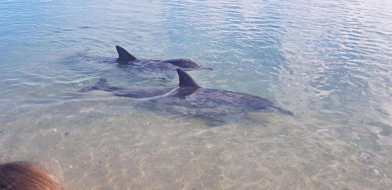Come in close we didn't get to feed 4 dolphins come in 2 fish only