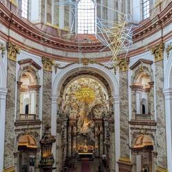 Mein erster Weg führte mich heute zur Karlskirche. Sie wurde Anfang des 18. Jhd. erbaut und dem Pestheiligen gewidmet. Anders als bei anderen römisch katholischen Kirchen lässt sich keinBaca lagi