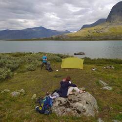 Bei der Alesjaure Hütte holen wir noch ein paar gut verdauliche Lebensmittel und Spiritus und schlagen nach einigen Kilometern mitten in der Heide an einem tollen Zeltplatz unsere Zelte auf und kochen ab sofort das gesamte Wasser mehrere Minuten ab. Müde gehen wir nach dem Essen ins Zelt, wo wir dieses Mal weder von Windböen noch Regenschauern heimgesucht werde ...Read more