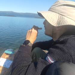 Die Vegetation ist hier nun endgültig in Heide und auf Bodenbewuchs beschränkte Pflanzen übergegangen und immer wieder tauchen eigenartige Blumen neben dem Weg und verschiedene Vögel am Himmel auf. Ein schöner Steg markiert den Bootsanleger für eine Abkürzung zum anderen Ende des Sees, doch wir gehen zu Fuß weiter. Aber schon kurz darauf finden wir einen tollen Platz zum Zelten mit eigenem Strand und mega Panorama. Nachdem ein paar entzündete Mückenstücke behandelt wurden, setzen wir uns zum Kochen raus und machen Mal wieder Spaghetti... Später kommt noch ein Regenschauer übers Zelt , doch das macht uns nichts aus - wir kochen uns Tee und bleiben drinnen...Read more