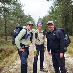 After stretching and some warm up exercises I started in the day. Long forest walks and beautiful heather landscapes in between. Listening to a podcast for a while I met a few hikers, but 2 of themEn savoir plus
