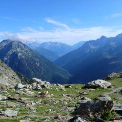 Da wir Wasser benötigen und ich keine Wasserquelle entdecke, wandern wir eine Ecke weiter zu einem Bach. Im Schatten gelegen und laut rauschend lädt der Ort aber weniger zum Übernachten ein, auch wenn es einzelne Zeltmöglichkeiten gäbe. Das Paar hat uns von einem schönen See am nächsten Pass mit vielen Zeltplätzen erzählt, den ich auch schon überlegt hatte und so geht es nochmal eine Stunde am Berghang entlang. Kurz vor dem See eine kleine Senke, in der wir uns sehr wohl fühlen und auch einen perfekten Zeltplatz mit Aussicht finden. Ich springe ein wenig über die Felsen, um die Umgebung zu erkunden und baue dann mein Zelt auf. Nach dem Abendessen geht es schnell ins Zelt und schlafen.Read more