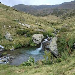 Der Abstieg zieht sich aufgrund der Wegbeschaffenheit in die Länge und das Risiko, dass wir es nicht vor dem Regen nach Eyne schaffen, steigt. Dennoch nehme ich bei einem kleinen Pool ein Bad und pflücke fleißig Beeren. Ein Nieseln setzt ein, aber wir erreichen ein kleines Holzhäusschen vor dem Starkregen, der nicht lange auf sich warten lässt. In diesem Häusschen verbringen wir den Rest des Tages aufgrund des Wetters und dem weiteren Verlauf des Weges, weshalb es keinen Sinn ergibt groß weiter zu laufen. Das einzige Mal, wo ich unser Zuhause verlasse, hole ich Wasser und gehe auf Toilette, die sich 10m nebendran befindet. Neben einem Tisch und Stuhl befindet sich eine Picknickdecke und eine Wolldecke im Raum, die für uns von nutzen sind. Endlich mal früh schlafen gehen und keiner stört uns.Read more