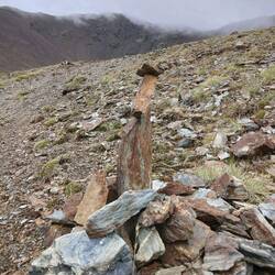 Da wir uns aktuell auf dem Haute randonnée pyrénéenne (HRP) befinden, gibt es keine Markierungen mehr, außer ein anderer markierter Wanderweg folgt diesem. Da habe ich mir zumindest für die HT Wandernden die Mühe gemacht, ein paar Markierungen zu legen.