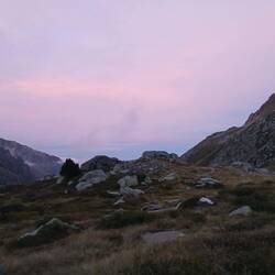 Während Anne ihr Zelt aufbaut esse ich erstmal gemütlich Chips. Während dwm Abendessen färbt sich der gesamte Himmel rosa und weiße Wolken hängen mystisch an den Felsspitzen am Bergkamm. Geröllfelder mit großen Felsstücken prägen die Landschaft. Dass Dessert wird noch schnell aufgegessen und tatsächlich schaffen wir es, vor 21 Uhr in unseren Schlafsäcken zu sein.Les mer