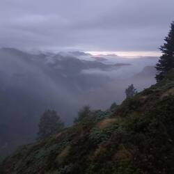 Der Weg findet sich leicht und erst wie die Platten aufhören und in einen steilen Grashang übergehen, verlangsamt sich mein Tempo. Zudem bin ich wieder in eine Wolke gehüllt und die Steine wirken rutschiger als die Felsplatten. Ein Kilometer folge ich dem Berghang und langsam bricht die Dunkelheit ein. Kurz vor der Hütte öffnen sich die Wolken und ich sehe das letzte Sonnenlicht den Himmel am Horizont bunt färben. Ich komme an die Hütte und kann die Tür nicht öffnen. Verdammt! Ich rüttle nochmal und höre dann zum Glück Bewegung von drinnen. Ein Mann öffnet mir die Tür und ich befinde mich in einer schönen Hütte mit Matratzen. Ich packe lediglich meinen Schlafsack aus und liege nach wenigen Minuten bereit zum Schlafen. Nach knapp 42km und über 7000Hm dauert es nur einen Augenblick, bevor mein Körper den Tag verabschiedet.Read more