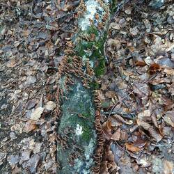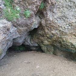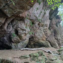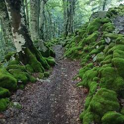 Dennoch bestaune ich die waldartige Felsenlandschaft, die so feindselig wirkt, aber dennoch sehr viel Leben birgt. Zudem finde ich unzählige Steine, die ich am liebsten alle mitnehmen würde, aber die Bilder reichen mir für dieses Mal aus. Zwischendurch bin ich der Meinung, dass wir das erste Mal den Atlantik sehen können, wobei es schwer zu sagen ist. Wir schlängeln uns durch die Felsformationen durch, bis wir am anderen Ende der spanischen Grenze folgend an eine Passstraße gelangen. Da der einzige Tisch belegt ist, genießen wir unser Mittagessen auf einem Bett in einer Schutzhütte. Bis zu unserem Tagesziel heißt es nun fasst ausschließlich bergab und es beginnt sanft, aber sehr kalt in eine Wolke den Grashang hinunter. Ab der Baumgrenze wird der Weg steiler, bis wir zum Abschluss durch eine überwachsene Schlucht laufen. Man könnte der Schlucht weiter hoch folgen, wo sich eine beeindruckende Höhle befinden soll, aber mir ist nicht nach Umwegen zu Mute. Zudem erfahre ich auf einem Schild, dass es Eintritt kostet, diese zu besichtigen.