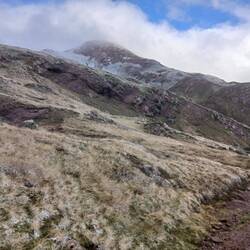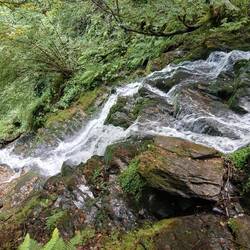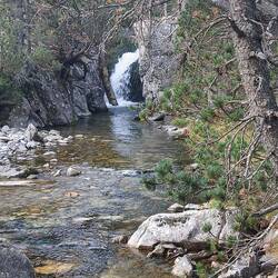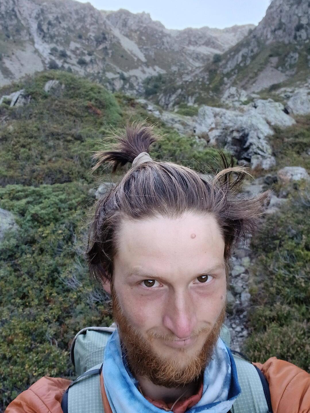 Nach einem Gewitter in der Nacht, dass direkt über mich hinweg zog, wache ich auf und habe am Rand eine winzige Pfütze in meinem Zelt, wo das Regencape liegt. Meine Fußbox wurde nur etwas feucht, aber ansonsten ist alles trocken. Ein langer Tag mit vielen Höhenmetern steht bevor, wovon es direkt 1200Hm hoch geht. Dabei verlaufe ich mich und steige einen markierten "Bachlauf" hoch. Steil runter ins nächste Tal, bis ich am tiefsten Punkt einen geeigneten Platz zum Frühstücken finde. Eine Schotterstraße führt mich das nächste Tal hoch, wo ich einen kleinen Abstecher zu einem Wasserfall mache. Wie ich dem HT folge, merke ich, dass ich den Wasserfall ohne den Umweg nie gesehen hätte, was häufig vorkommt.