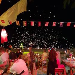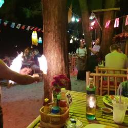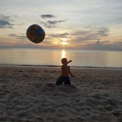 Der erste weitläufige Sandstrand auf unserer Tour mit traumhaften Sonnenuntergang und beeindruckender Feuershow.