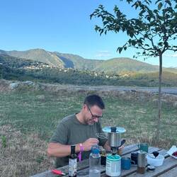 Frühstück in den Bergen, Einkauf und dann zum Campingplatz