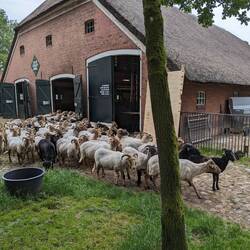 Elke dag om 10 uur vertrekt de herder met haar shapen naar de heide ,de schapen zijn van de boeren uit de omgeving dit varieert van 10 tot 250 shapen