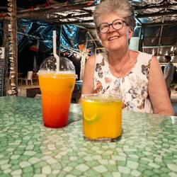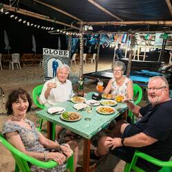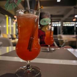 Der starke Wind, der die Wellen am Strand über den Tag stärker werden ließ, fiel zum Sonnenuntergang fast völlig zusammen und später hatten wir einen entspannten Abend in "unserer" Drinks & FoodRead more