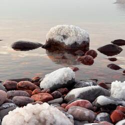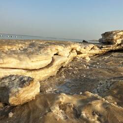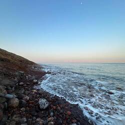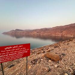 Good Morning, Dead Sea. Da ich heute den Mietwagen zurückgeben muss und ich definitiv noch einmal im Tote Meer treiben will, klingelt der Wecker mal wieder etwas früher.