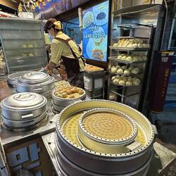 Der Stadtteil Myeong-dong ist bekannt für sein Streetfood. Und was soll ich sagen: die sind überall!
