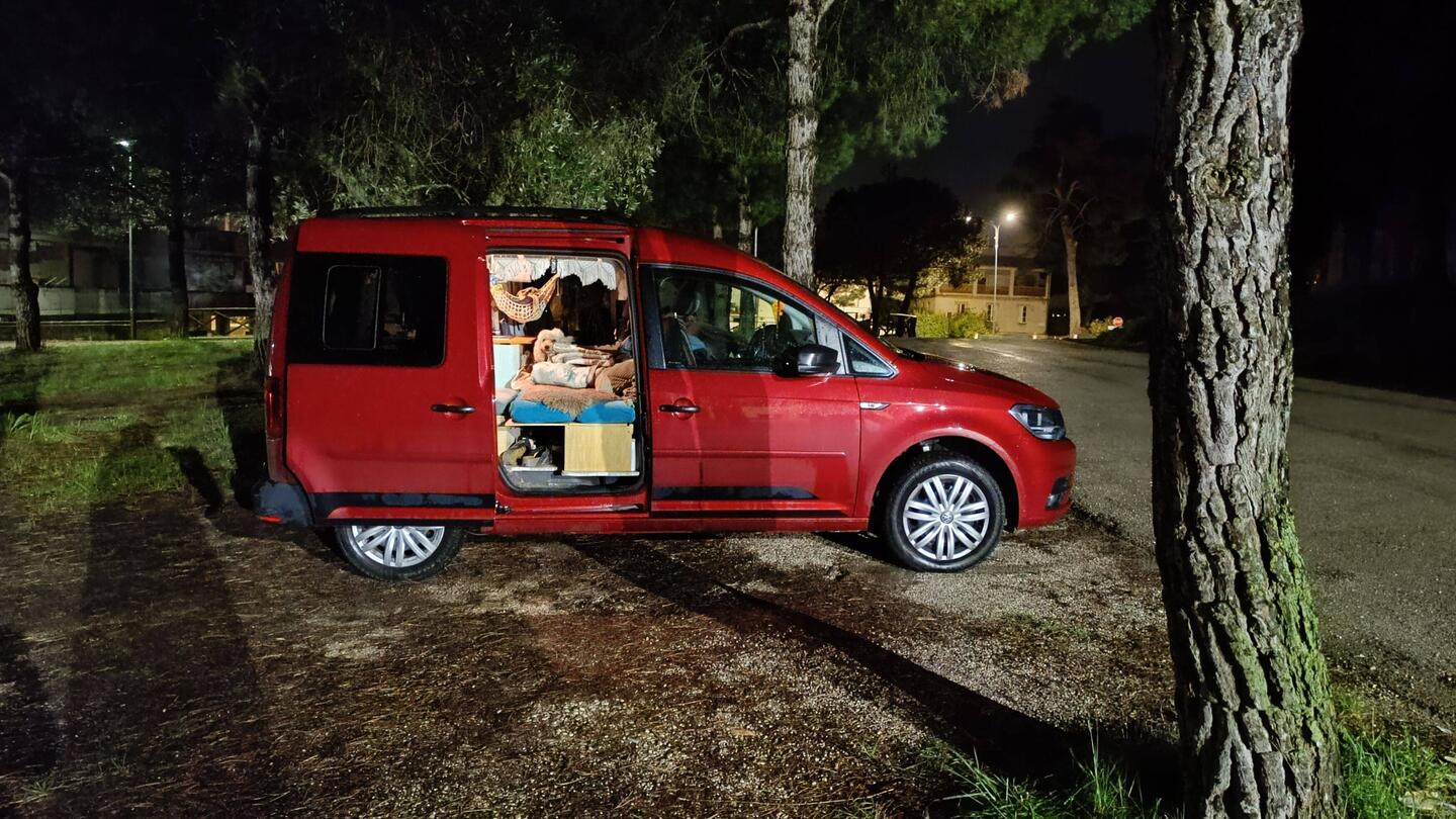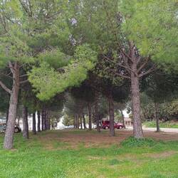Hier hatten wir unsere Ruhe unter den Kiefern. Diese Stadt lag etwas höher und so erwachten wir am Morgen mit Meerblick auf die Adria.