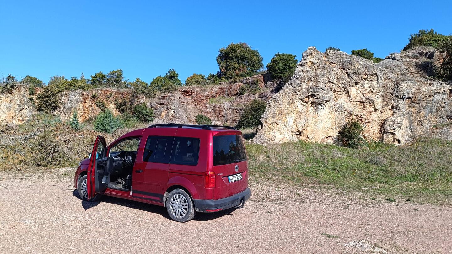 Der Caddy hat es leider nicht bis da oben hin geschafft, weil der Weg zu steil war und auf dem Weg Schotter ist. Auch im ersten Gang ist er immer wieder durchgedreht und er rutschteもっと詳しく