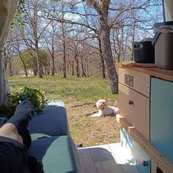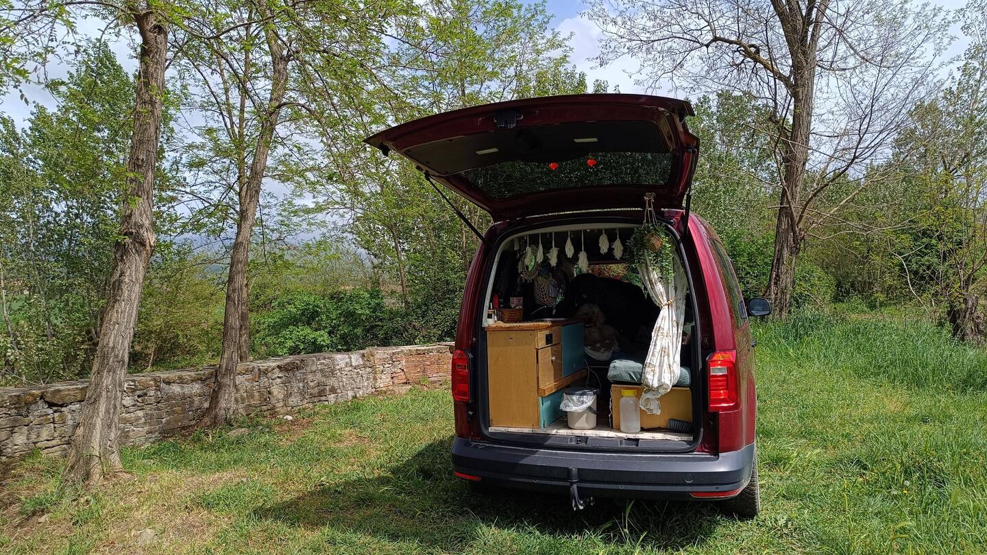 Kleinen Spaziergang gemacht 🌞 und im Caddy chillen.