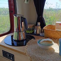 Es sind die perfekten Temperaturen um im Caddy zu sitzen und zu chillen. Die Heckklappe und die Schiebefenster sind geöffnet, so kommt ein leichter, kühler Luftzug in den Caddy und von oben wärmtもっと詳しく
