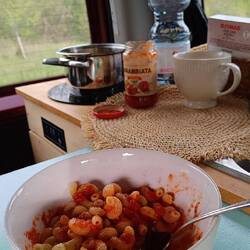 Wir haben hier wirklich lange gechillt, ich habe mir noch Nudeln gekocht und habe weiter gechillt, etwas geschlafen, Nina war fast die ganze Zeitもっと詳しく