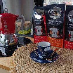 Ich habe mir eine neue Bialetti gekauft, Pizza gessen, Schaufensterbummel gemacht.