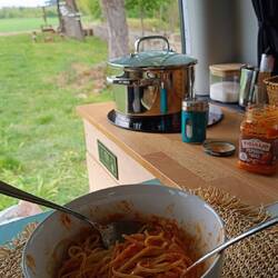 Kurze Pause gemacht und das Bergpanorama bestaunt🏔️ und Nudeln gekocht.