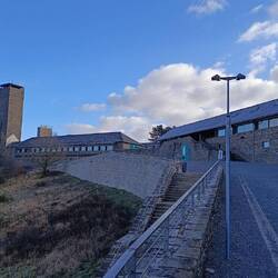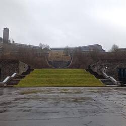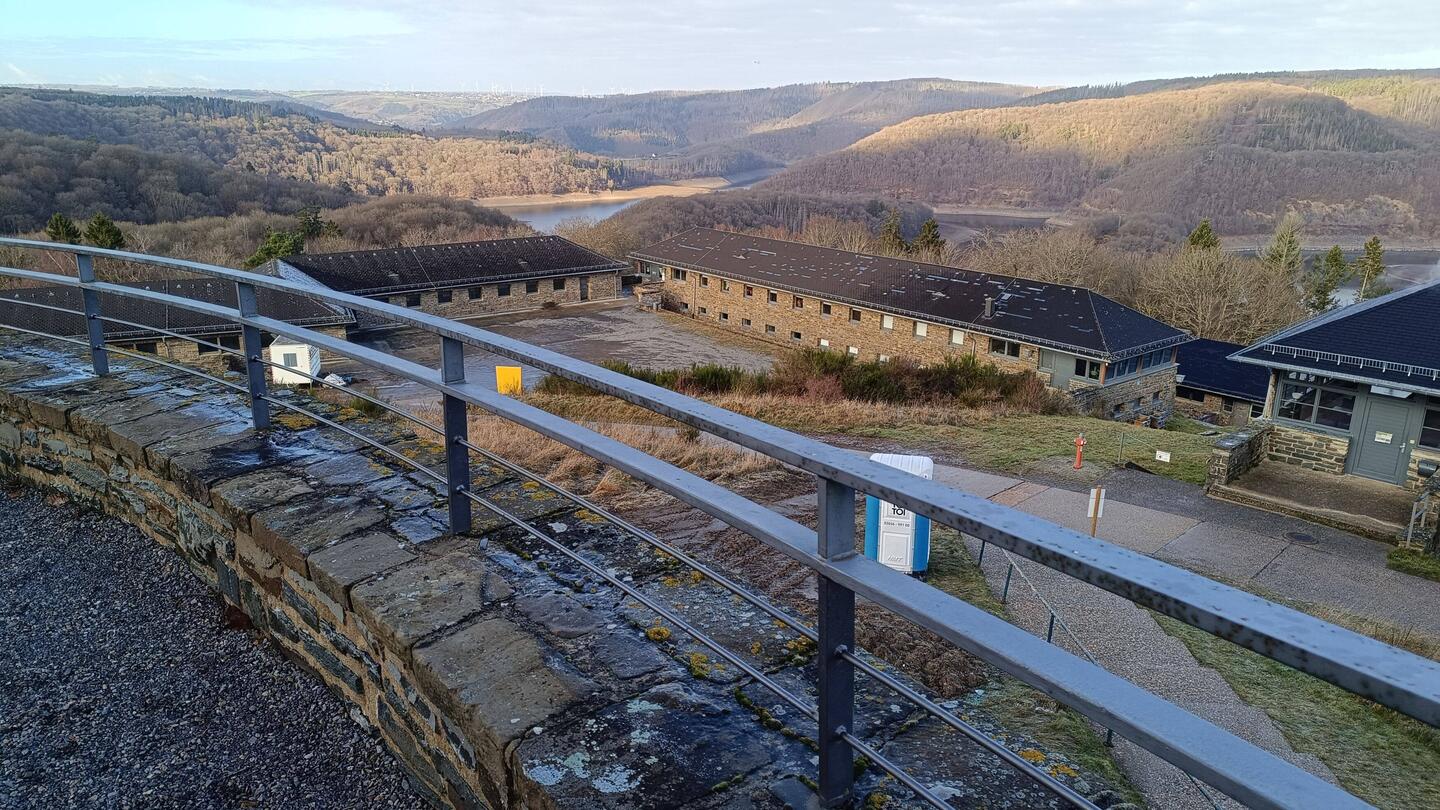 Noch vor dem Sonnenaufgang sind wir auf diesen Parkplatz gewechselt, auf dem Areal von Vogelsang IP, der Ordensburg von Hitler.