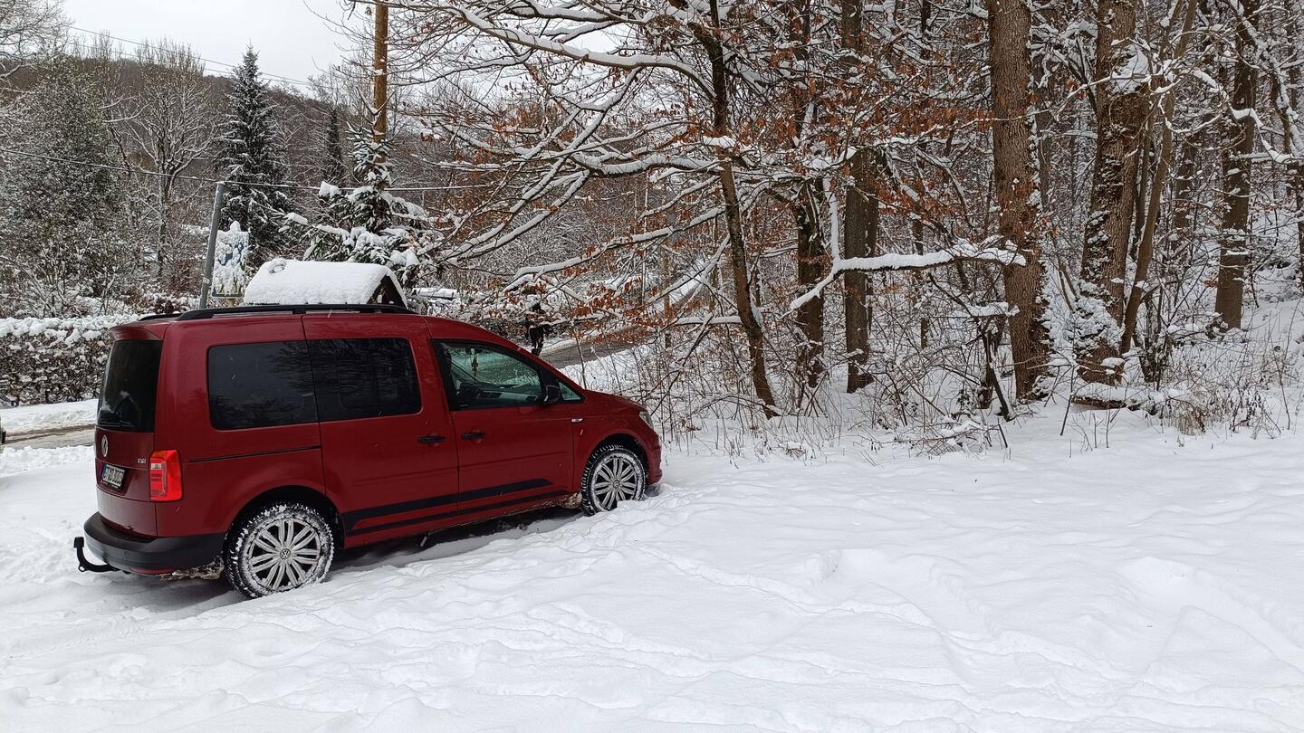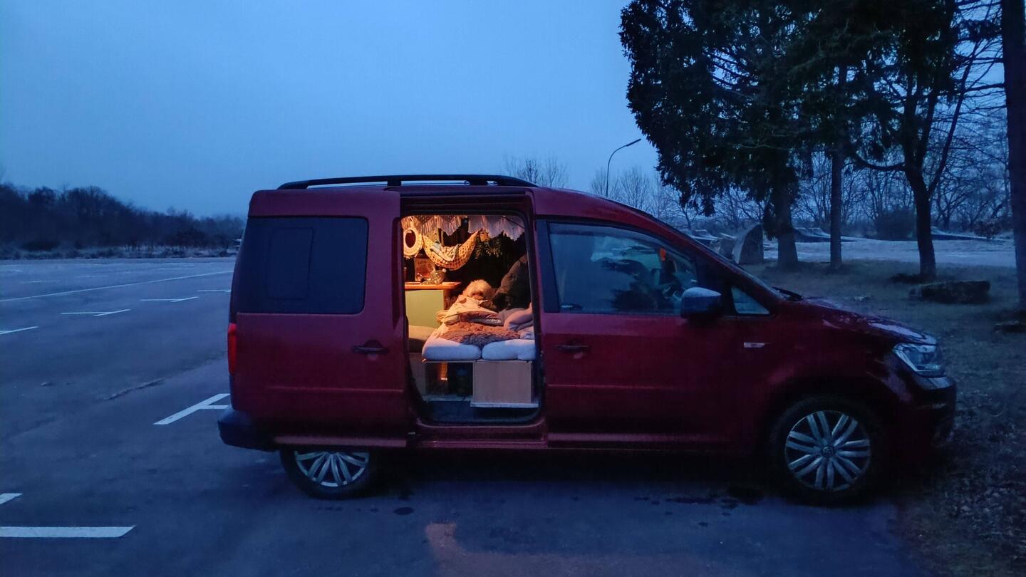 Die Nacht war draußen frostig kalt und windig, fast schon stürmisch, es hat etwas geschneit und im Caddy war es kuscheligLæs mere