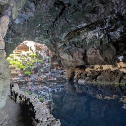 Baixo per les escales i de cop el paisatge canvia: una cova volcànica transformada en un espai màgic. L’aigua transparent al fons amaga els curiosos crancs cecs, únics al món, i al voltant totRead more
