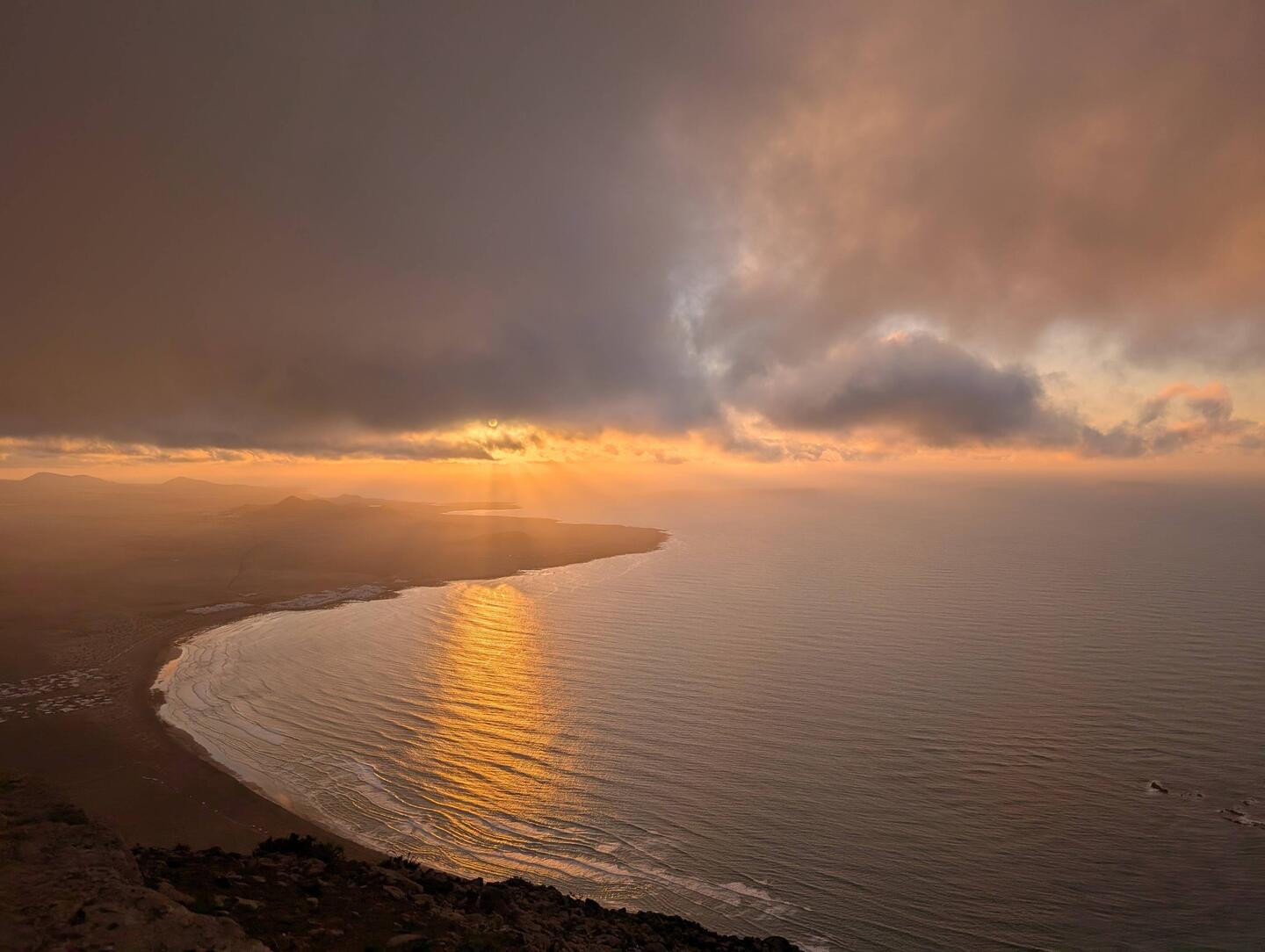 Ens aturem al Mirador de El Risco de Famara just a temps per la posta de sol. El cel es tenyeix d’un vermell intens i espectacular, mentre l’oceà reflecteix els últims rajos de llum. DesRead more