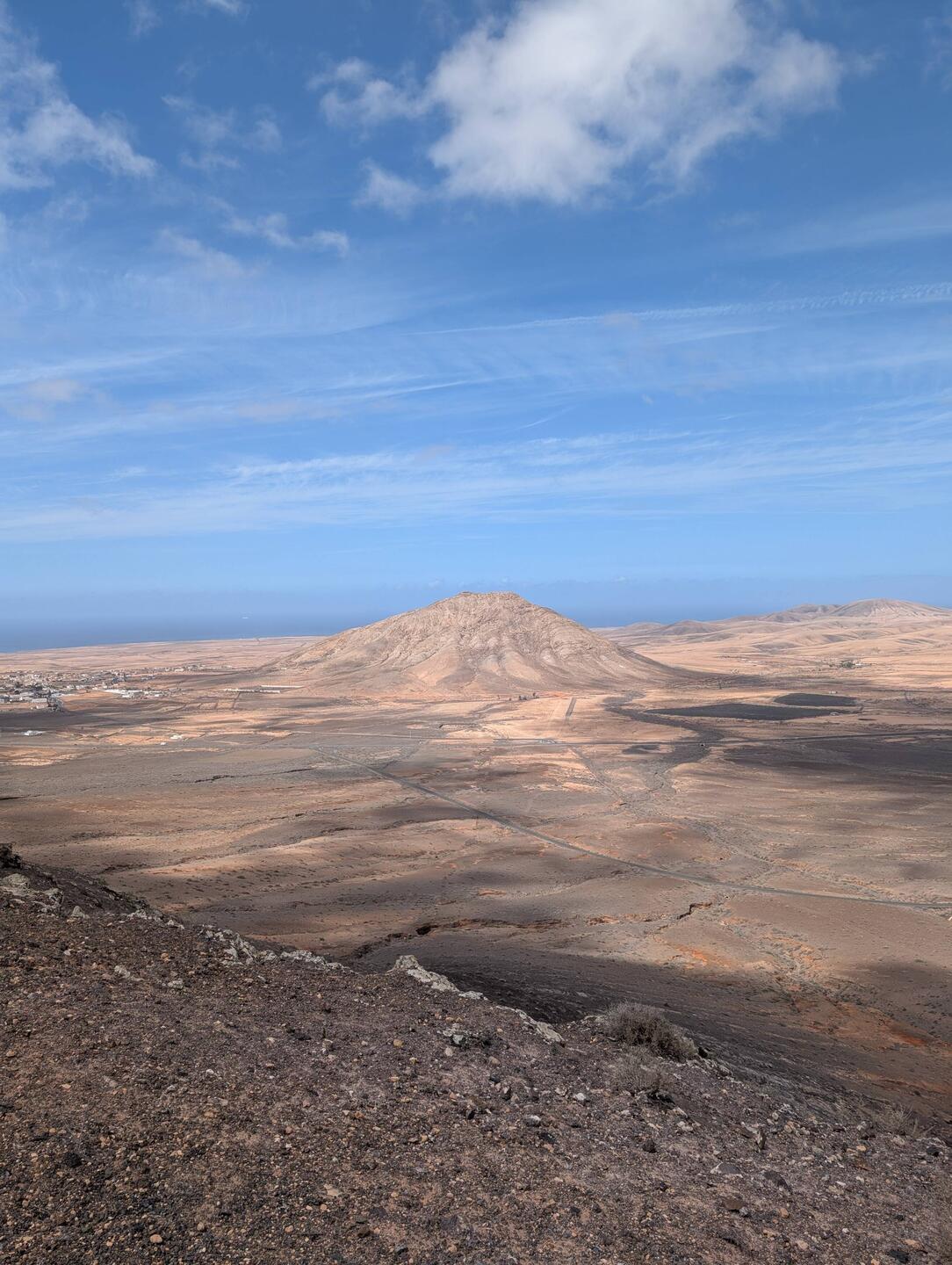 Fem parada al Mirador de Vallebrón, des d’on s’obre una panoràmica immensa sobre l’interior de Fuerteventura. El paisatge és sec i ondulat, amb muntanyes suaus i valls que s’estenen fins aRead more