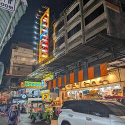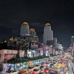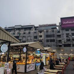 Mercat nocturn animat al centre de Bangkok, amb una gran varietat de roba, accessoris i menjar local. Primer contacte amb l’ambient dels mercats de Tailàndia.