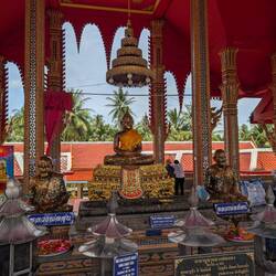 Durant el trajecte amb barca pels canals vam fer una última parada al temple Wat Prak Charoen. Aquest petit temple budista destaca per les seves decoracions acolorides i l’estàtua central, punt deRead more