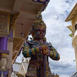 El Wat Phra That Doi Wao és un temple que sorprèn de seguida pel seu color: tot el recinte està pintat de lila intens, un contrast radical amb els tons daurats i tradicionals de la majoria de Czytaj więcej