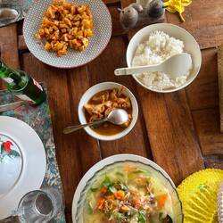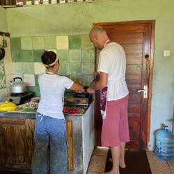 After short walk around we had a cooking class, yay! We made curry chicken, fried potatoes with sweet chilly and a vegetable soup. This was so much fun! Also talking to ladies to find out more about this nice place 😊 we cooked good 😋
